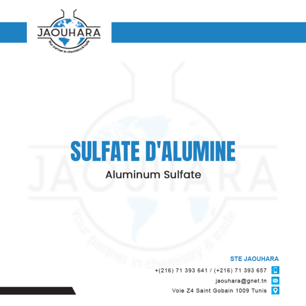 AccueilTraitement des eauxComposants chimiquesSULFATE D’ALUMINE SULFATE D’ALUMINE Blanc, solide cristallin . Conditionnement Choisir une optionSac de 25KGEffacer quantité de SULFATE D'ALUMINE Ajouter au panier UGS : ND Catégories : Composants chimiques, Traitement des eaux Identifiant du produit :21474 Description Informations complémentaires Description Utilisé comme agent floculant dans le traitement de l’eau, ainsi que dans les industries papetières et textiles. Informations complémentaires Conditionnement Sac de 25KG Produits similaires DESSALINISATEUR A ELECTRODIALYSE EDR Ajouter au panier PH-DI-ISOBUTYLE Ajouter au panier SULFATE DE CUIVRE Ajouter au panier
