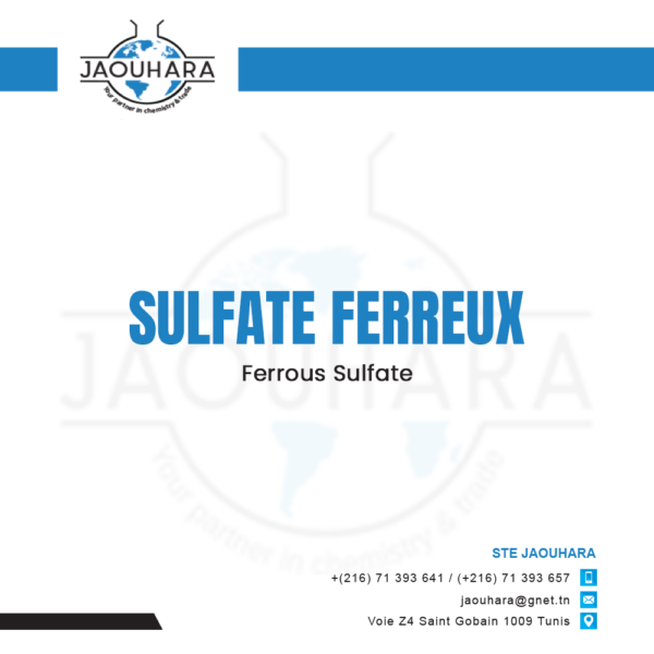 AccueilProduits chimiquesSulfate ferreux Sulfate ferreux Cristaux verts ou bleu-verts, hygroscopique. Conditionnement Choisir une optionSac de 25KGEffacer quantité de Sulfate ferreux Ajouter au panier UGS : ND Catégorie : Produits chimiques Identifiant du produit :21565 Description Informations complémentaires Description Utilisé comme supplément en fer, dans l’engrais et pour la purification de l’eau. Informations complémentaires Conditionnement Sac de 25KG Produits similaires Chlorure de magnésium Ajouter au panier Chlorure de calcium Ajouter au panier Charbon actif Ajouter au panier